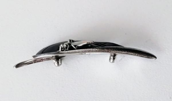 二種類の材質を貼り合わせた彫金の葉っぱに昆虫をあしらった帯留めになります。